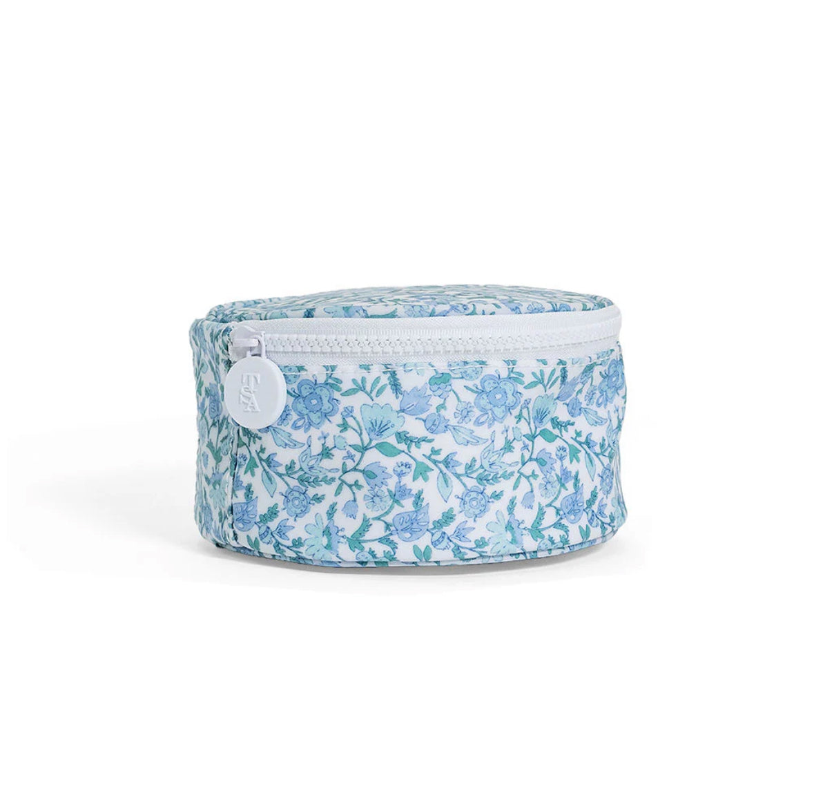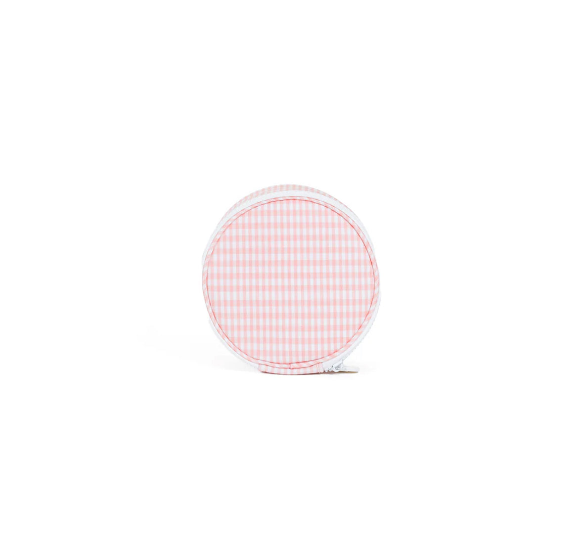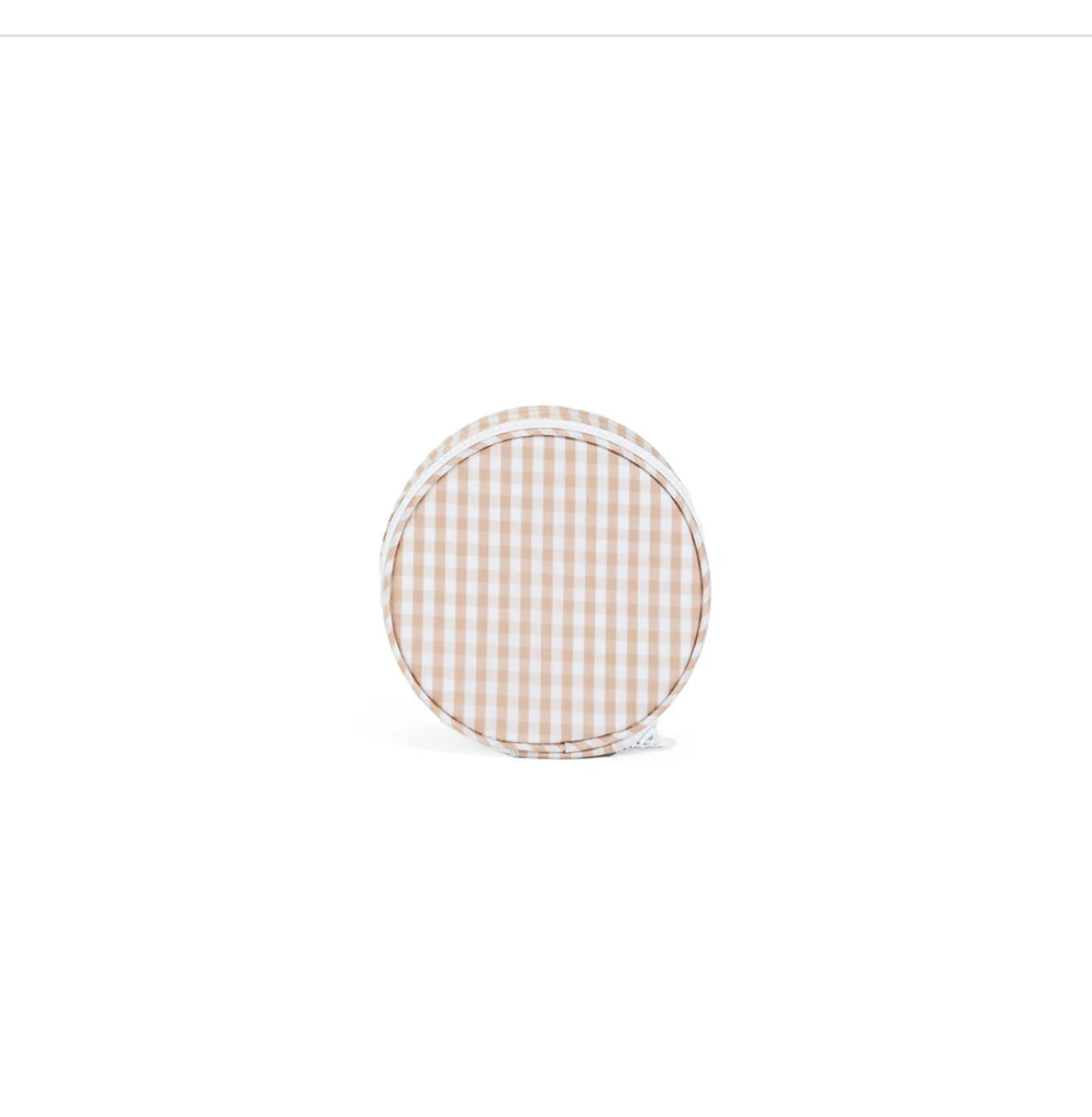 Our Jewel Round is super lightweight and a perfect place to store your bits and baubles. It has elasticized compartments for bulkier pieces, like watches, bracelets and hair ties. This case can just as easily be used as a general catch-all for things like keys or earbuds. As bonus it looks pretty enough to leave on your dresser desk when you're not traveling.