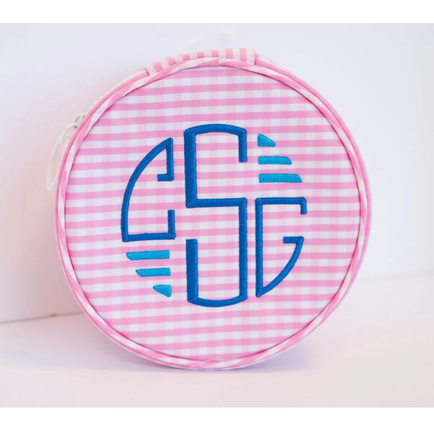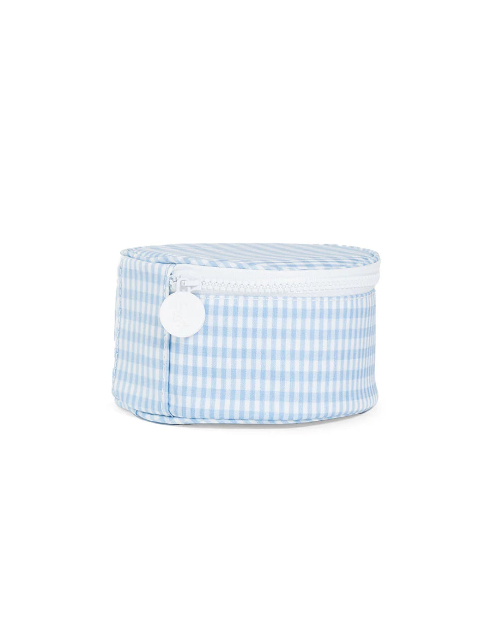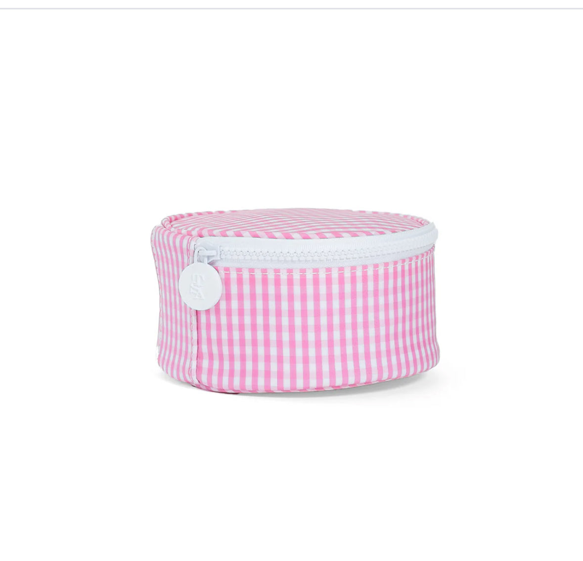 Our Jewel Round is super lightweight and a perfect place to store your bits and baubles. It has elasticized compartments for bulkier pieces, like watches, bracelets and hair ties. This case can just as easily be used as a general catch-all for things like keys or earbuds. As bonus it looks pretty enough to leave on your dresser desk when you're not traveling.